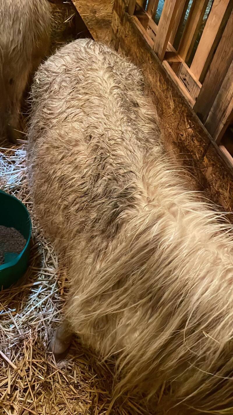 Hij stond met zijn hoofd naar beneden gehangen in een stal. Broodmager, en voor hem hoefde het allemaal niet meer.... in en in triest.